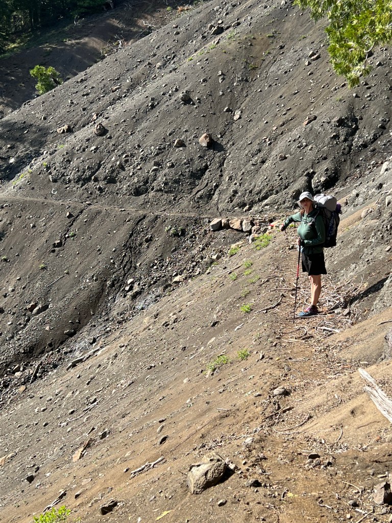 The days are pleasant and cool, perfect for hiking. We were a bit worried at the start as a heat dome was over the west and city temps were in the 90’s and above. Thankfully for us the heat moved eastward. But the nights are bitter cold, down in the 40’s and 30’s! We huddle as best we can in our hammocks wearing every stitch of clothing we have, but it’s still chilly. Part of the experience, right?