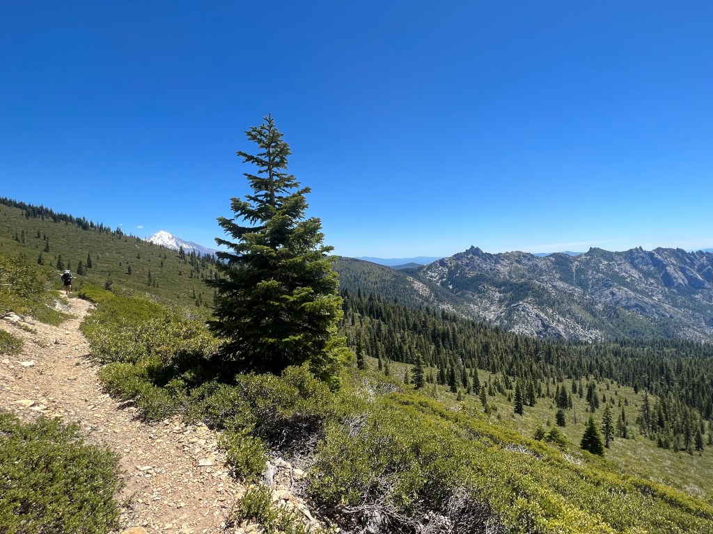 Week two on the PCT offered boundless views and exposed elevated landscapes. The heat returned with a fury and we are thankful to have brought a good sun hat and a long sleeve Sun shirt with hood. Our cool damp bandannas are never bored. We strive to hike in the cooler mornings, often waking up around 6am or so, especially climbing the inclines.
