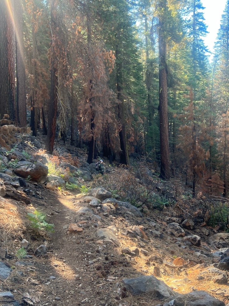 Before the storm Ian in the Gulf developed, we were able to get some more hiking miles in southbound from Burney to Chester, CA, after finishing Oregon. Along with cooler hiking temps and fewer bugs, the scarcity, finally, of other hikers in this section was very pleasant, due to the off season timing of this part of the trail. Some recent days we barely passed another person on the trail, a true luxury. We also witnessed lots of fire burn areas from previous years, thousands of dead tree sentinels standing watch, blackened bark and limbs littering both ground and sky, which was of course depressing on its own, though also instructive at how fast other life will try and retake valuable real estate with the newly available sunlight. Change is always all around us. Frigid nights seeping down again into the 30’s along with a, at least for me, general tiredness in my bones coaxed our decision to head home for this season. Proud of the miles we’ve covered, we’ll be back to finish the other sections later; as we all say, the trail isn’t going anywhere. I feel so fortunate to have seen all I have, even though my feet still hurt.